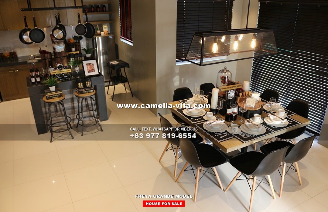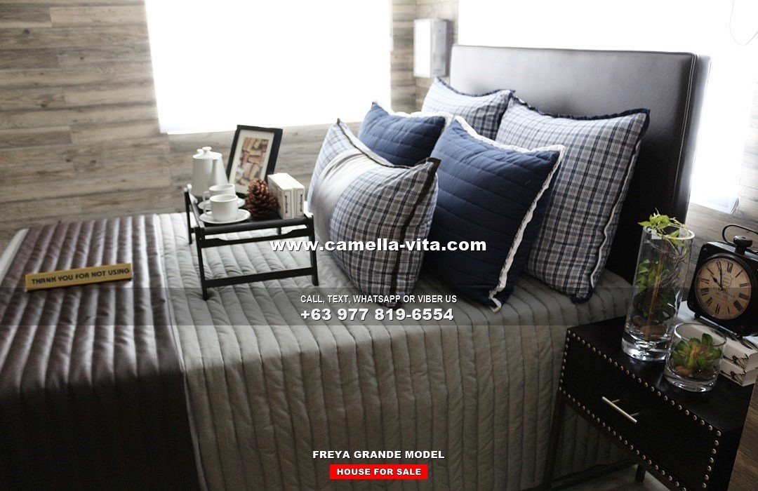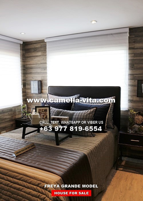 Freya has a minimum standard lot area of 130 sqm and a house area of 142 sqm. Freya is one of the newest house models in our top-of-the-line Grande series. It’s a single attached house with five bedrooms, three toilets and baths, a study area, a living area, dining area, kitchen, 2 carports, balcony, covered porch and a laundry and service area. At a very attractive price point, you can own this exquisitely beautiful five-bedroom house and lot in Camella Vita in General Trias!